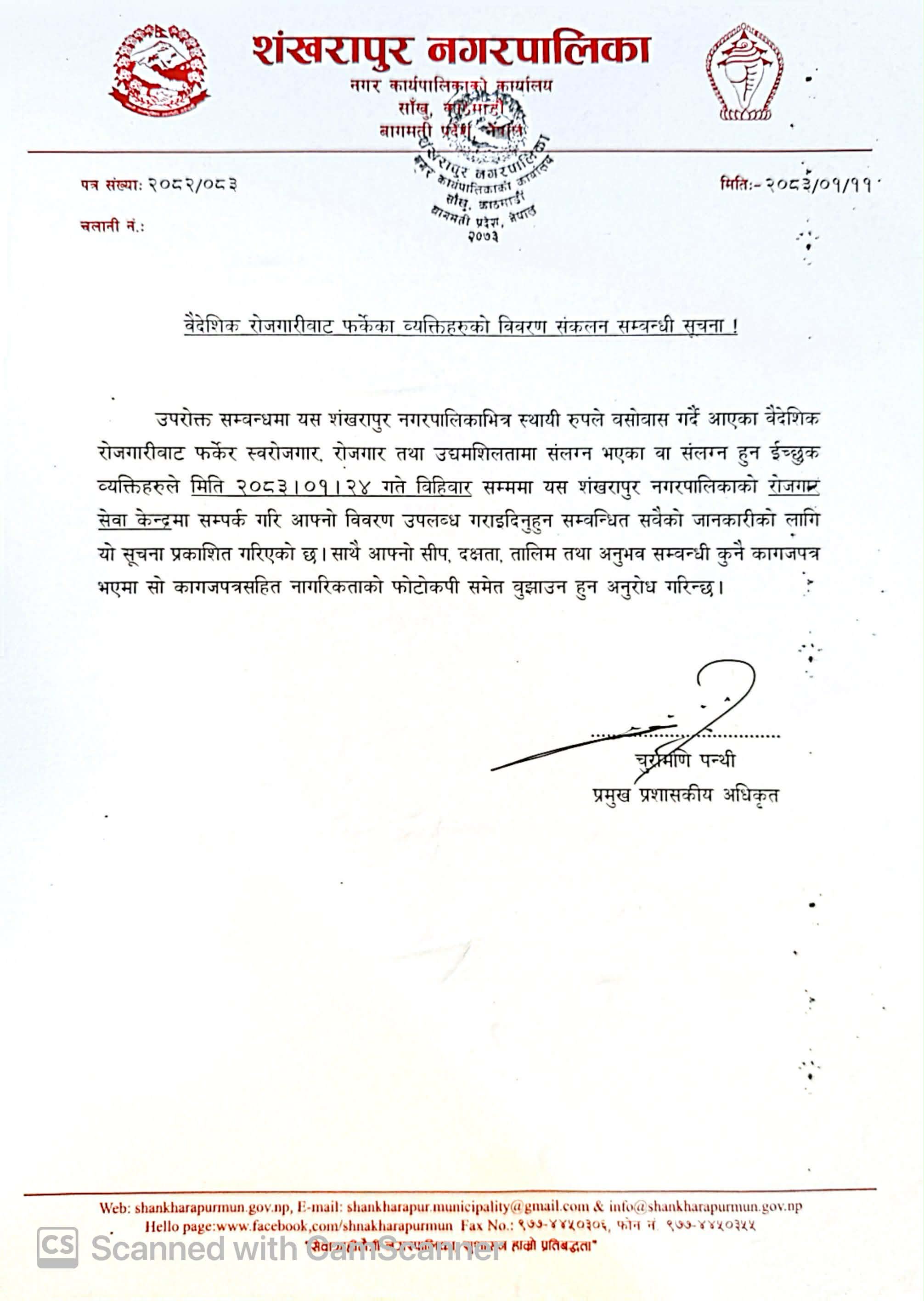 वैदेशिक रोजगारीबाट फर्किएको व्यक्तिहरुको विवरण संकलन सम्बन्धी सूचना।
