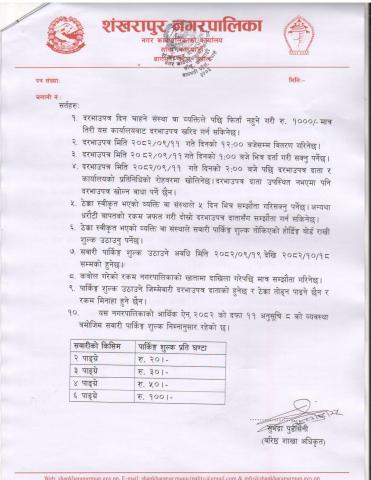 » सवारी साधन पार्किङ्ग शुल्क उठाउने सम्बन्धी सिलबन्दी दरभाउपत्र आह्वाको सूचना