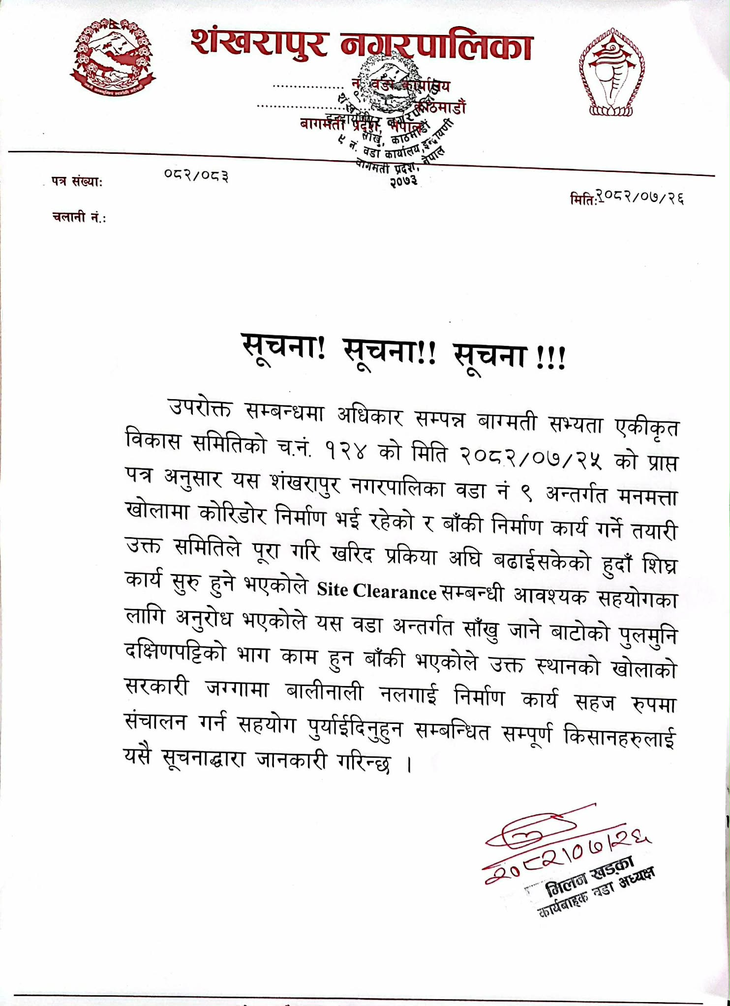 जाग्गा अधिग्रहण गर्ने सम्बन्धी सूचना