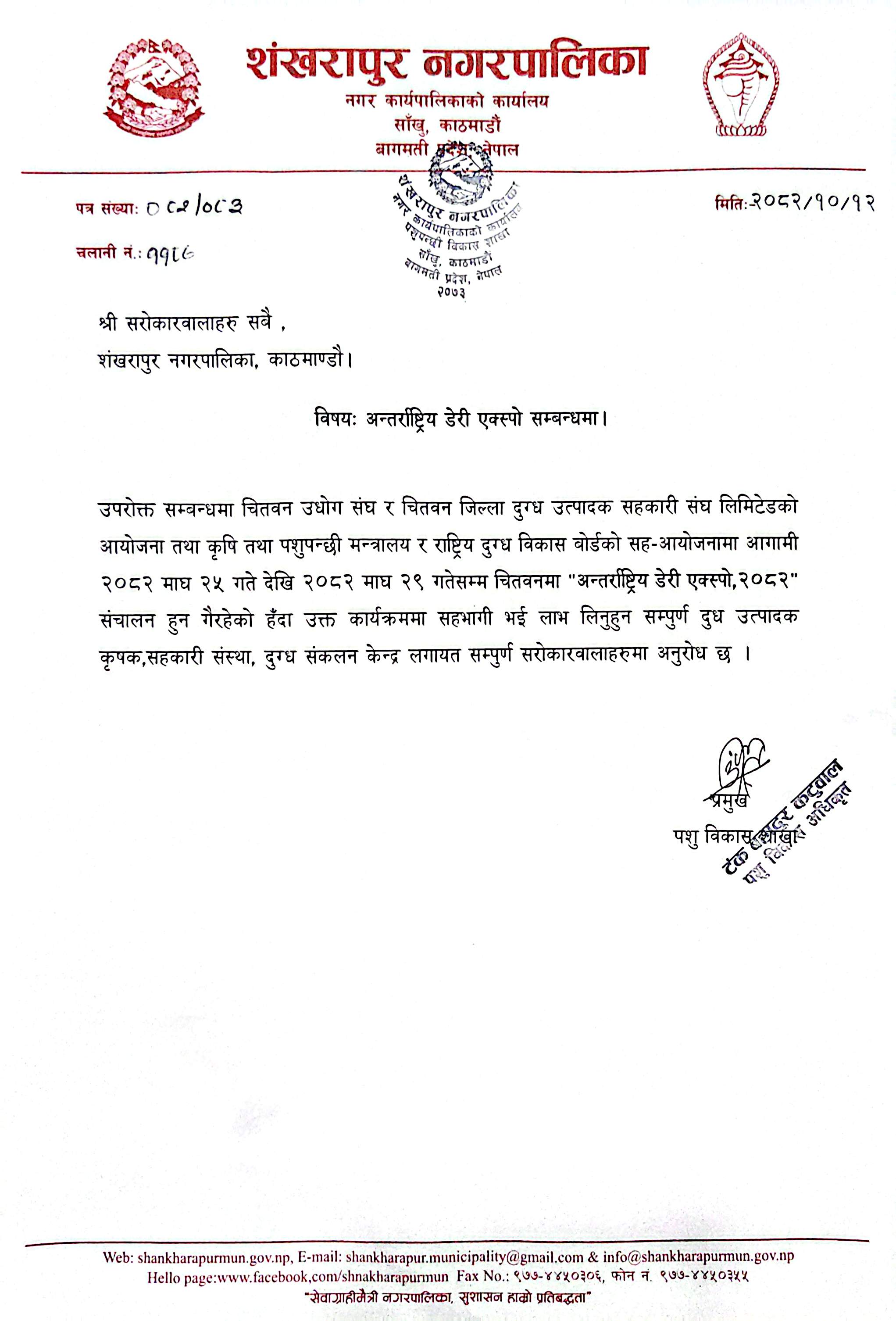 अन्तर्राष्ट्रिय डेरी एक्स्पो सम्बन्धमा।