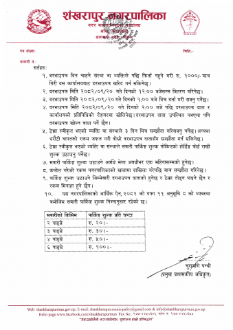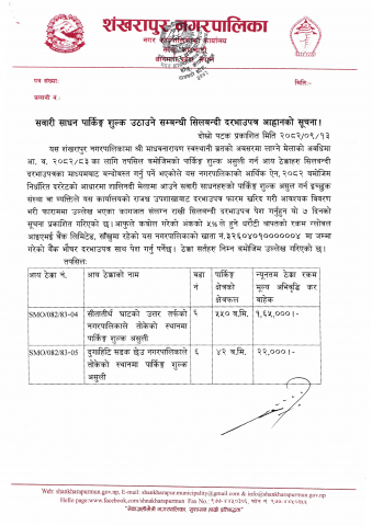 सवारी साधन पार्किङ्ग शुल्क उठाउने सम्बन्धी सिलबन्दी दरभाउपत्र आह्वानको सूचना !