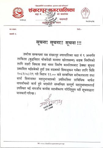 जाग्गा अधिग्रहण गर्ने सम्बन्धी सूचना
