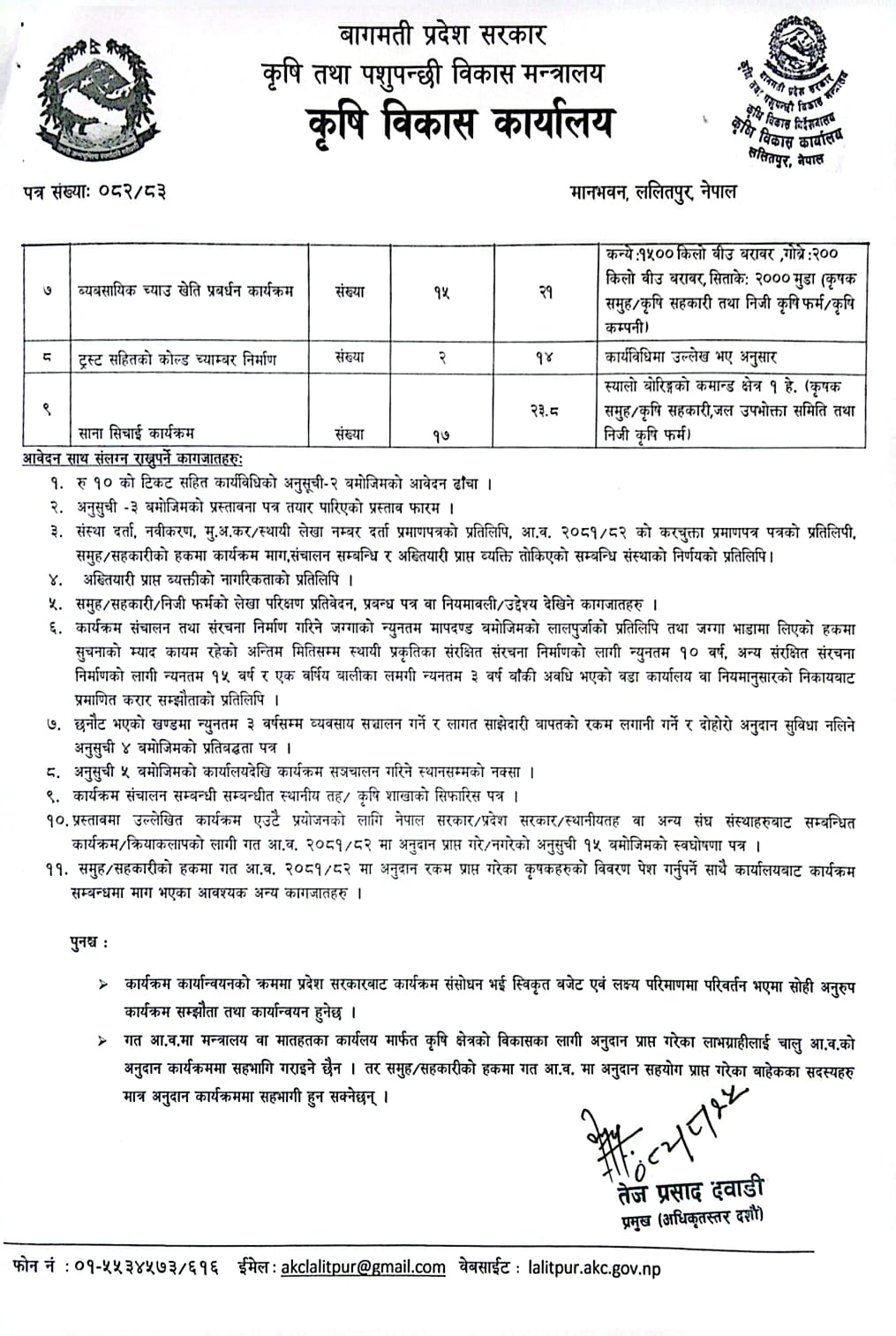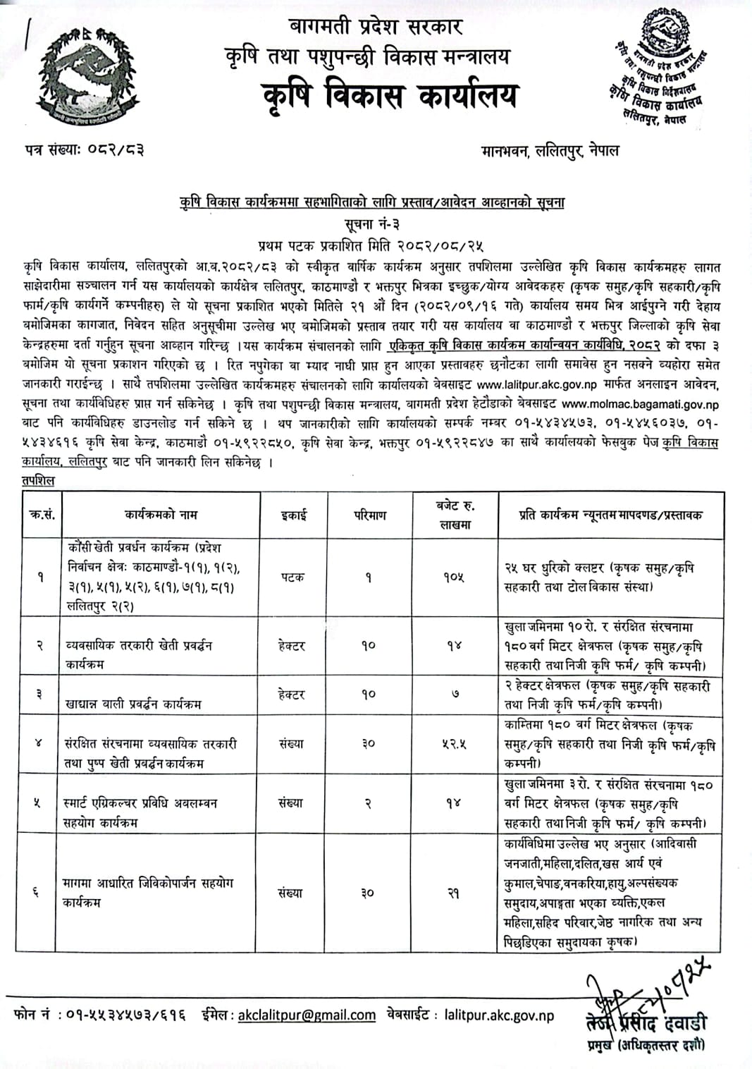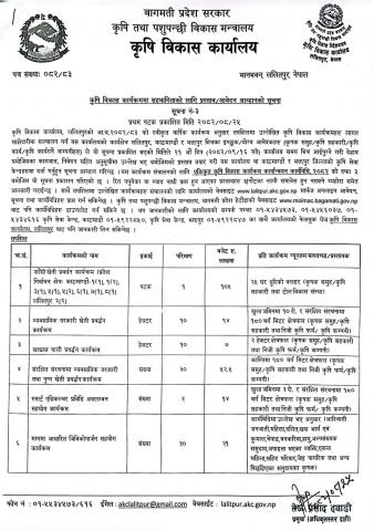 कृषि विकास कार्यालयको कृषि विकास कार्यक्रममा सहभागिताको लागि प्रस्ताव/आवेदन आव्हानको सूचना।