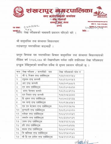 लेखा परिक्षकको नामावली प्रकाशन गरिएको बारे